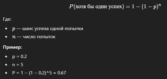 - Делайте больше попыток — вероятность успеха растёт.